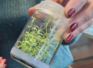 Un moment deosebit al programului a fost vizita în Blocul Biotehnologic al laboratorului Biochimia Plantelor, unde elevii au descoperit tehnicile moderne de micropropagare și au aflat despre rezultatele de ultimă oră obținute de cercetători. În cadrul prezentărilor, șefa laboratorului dna dr. Tatiana Călugăru-Spătaru a evidențiat cercetările privind multiplicarea unor specii de interes economic și ecologic. Printre acestea se numără Actinidia arguta (mini-kiwi), o specie fructiferă valoroasă cu potențial de adaptare la schimbările climatice, și stejarul pufos (Quercus pubescens), important pentru programele de reîmpădurire și pentru creșterea rezilienței ecosistemelor la secetă. De asemenea, au fost prezentate rezultate privind multiplicarea unor plante rare și ornamentale, precum ghiocelul (Galanthus spp.) și crinul de pădure (Lilium martagon), specii cu valoare deosebită pentru conservarea biodiversității și patrimoniului natural. Cercetările dedicate speciei Monarda fistulosa L., o plantă aromatică, alimentară și ornamentală, cu o compoziție fitochimică asemănătoare genurilor Thymus și Origanum, au atras în mod special atenția. Datorită producției ridicate de timochinonă, această specie prezintă un interes major ca plantă medicinală. În cadrul studiilor realizate, a fost selectată prin fenotipare o clonă cu producție maximă de fenoli volatili și timochinonă, ulterior multiplicată prin micropropagare in vitro. Analizele au demonstrat că această clonă are un conținut ridicat și stabil de compuși activi, cu valori aproape duble ale timochinonei și ale randamentului de ulei volatil comparativ cu biotipul polimorf. Din uleiul obținut de la plantele multiplicate in vitro a fost izolată substanța activă timohidrochinona, cu un randament de două ori mai mare comparativ cu plantele cultivate tradițional. Aceste rezultate confirmă că micropropagarea reprezintă o metodă promițătoare pentru producția industrială standardizată de substanțe farmaceutic active. Prin aceste exemple, elevii au înțeles că biotehnologia vegetală nu se limitează la cercetarea teoretică, ci are aplicații directe în agricultură, medicină, protecția mediului și conservarea speciilor rare. Experiența vizitei i-a impresionat, determinându-i să aprecieze contactul direct cu cercetarea aplicată și să înțeleagă mai bine impactul biologiei asupra sănătății, agriculturii și dezvoltării durabile.